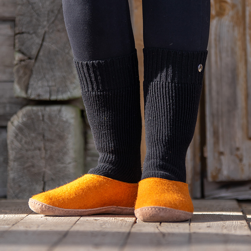Huovalla on hämmästyttävä lämmöneristyskyky nämä tossut pitävät jalkasi aina kuivina ja lämpöisinä sillä huopa imee kosteutta itseensä ja samalla eristää lämpöä tehokkaasti. Tossujen pohjassa käytetään vain kromitonta nahkaa, joka on parkittu luonnollisin keinoin ilman raskasmetalleja eikä se jätä myrkyllisiä vaikutuksia ympäristöön.