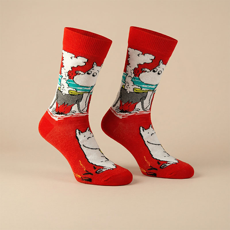 Nämä sukat sopivat täydellisesti niin arkeen, töihin kuin vapaa-aikaan – silloin kun haluat jalkaasi pehmeät, hyvin istuvat sukat ja päivään vähän Muumi-henkeä. Valittavanasi on hurmaava joukko hahmopareja. Jokaisessa parissa on oma tunnelmansa – välillä rauhallinen ja lempeä, välillä vähän vallatonkin.