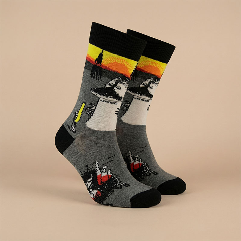 Ja kyllähän sen tietää: joskus päivään tarvitaan Muumimamman lempeyttä, joskus Nuuskamuikkusen huoletonta asennetta ja toisinaan taas ihan vähän Pikku Myyn energiaa. Haisuli ja Mörkö samassa sukkaparissa kertovat jo valmiiksi, ettei kyse ole aivan tylsistä sukista.
